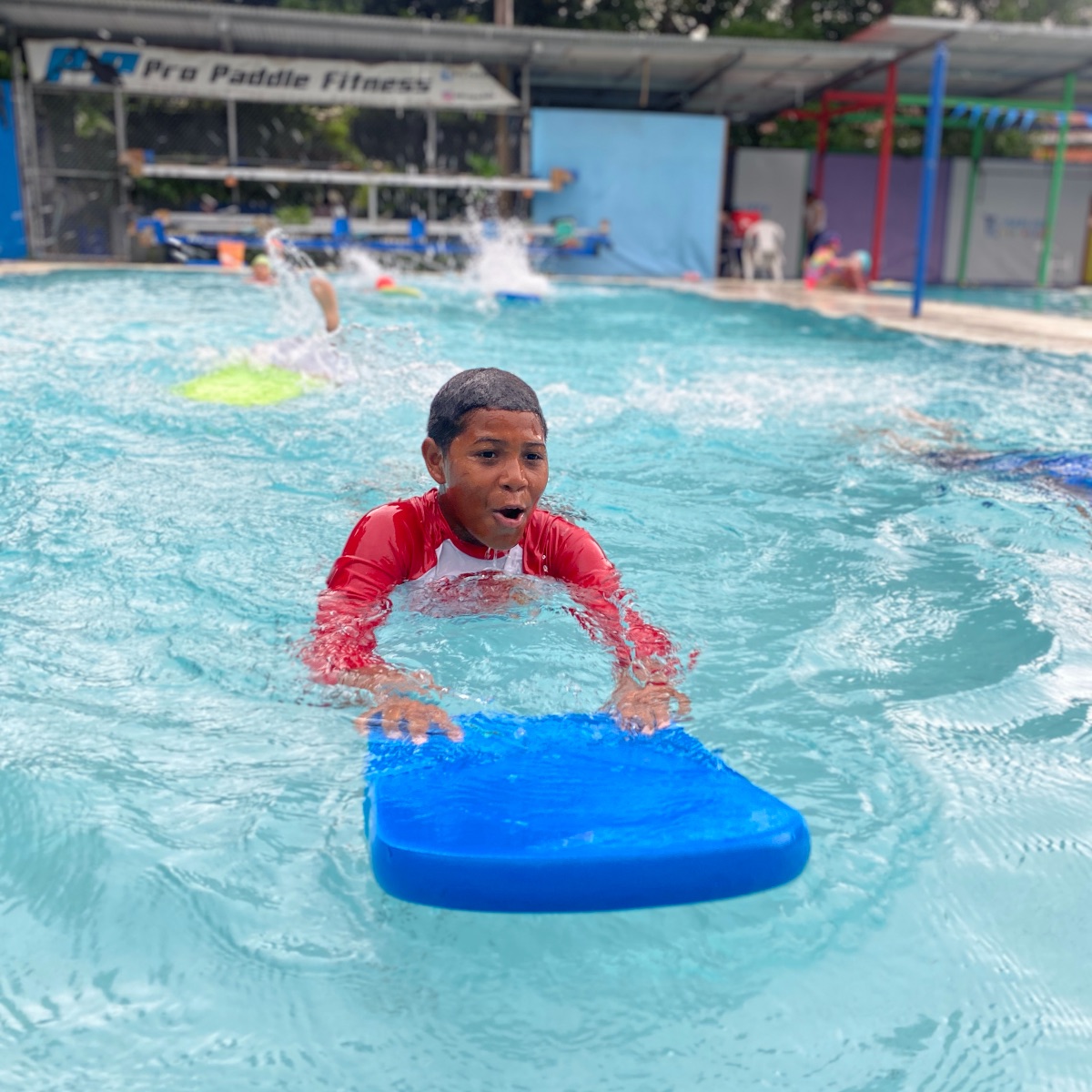¡Manteniendo la visión de 'igualdad de oportunidades educativas para todos los estudiantes', en adición al programa de surf, también iniciamos con actividades de natación. Es gracias a la piscina Los Rios, la Junta Comunal de San Francisco y los maestros y padres de familia de la escuela Federico A. Velásquez que los primeros estudiantes han podido disfrutar su primera clase.