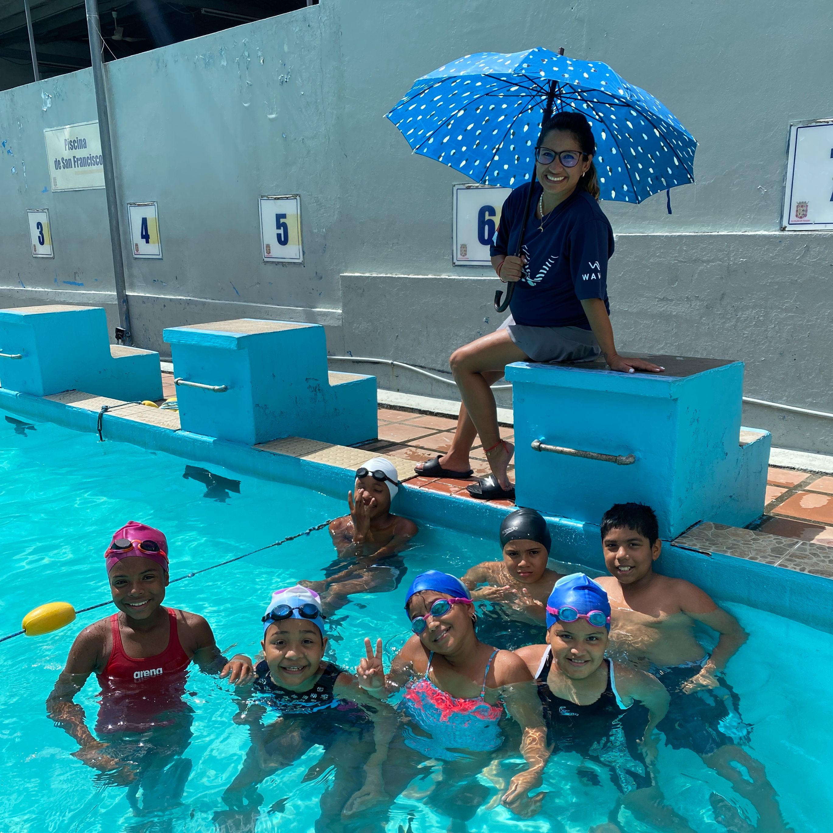 Como todas las semanas, la coach Darling Hernández junto a sus estudiantes en el programa básico de natación en San Francisco. También en San Francisco, tenemos a cuatro estudiantes del programa avanzado participando en su primera competencia municipal.