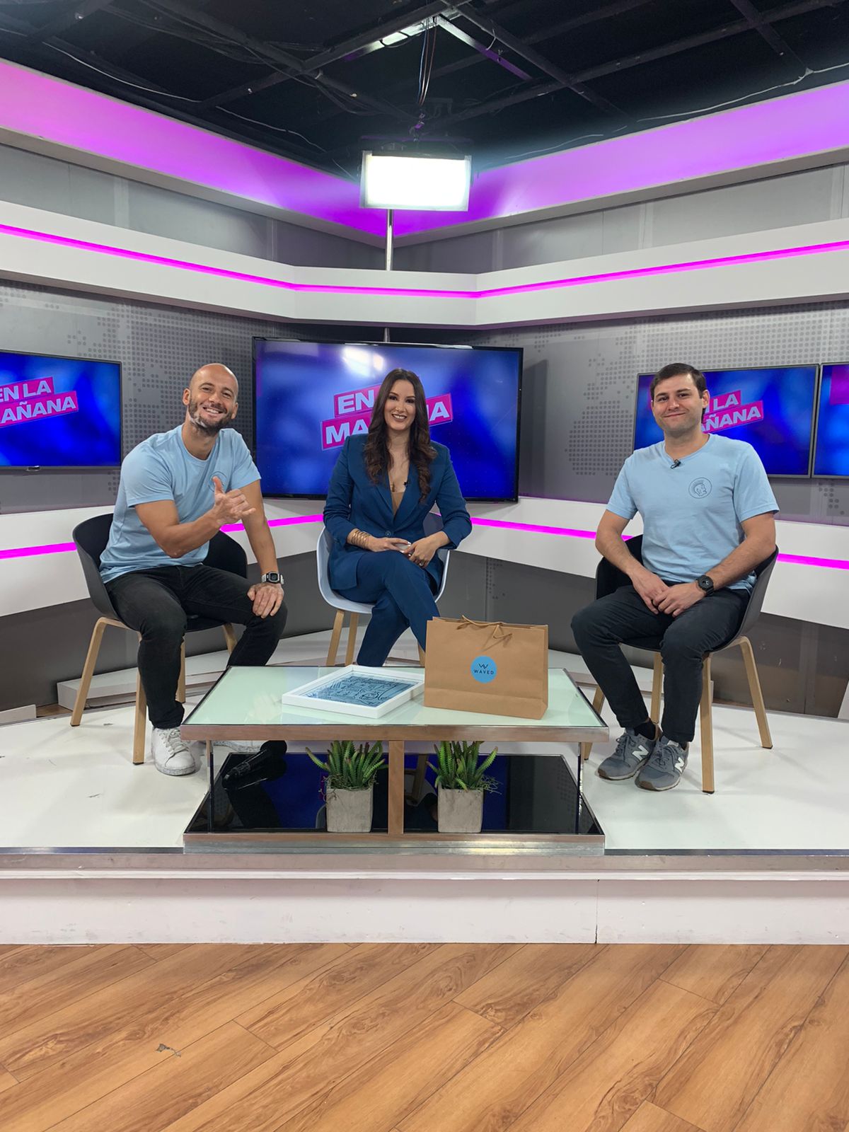 Jonny Talento Erratic y Bastian Barnbeck junto a Robin Durán en el TV show Jelou promocionando la camiseta.