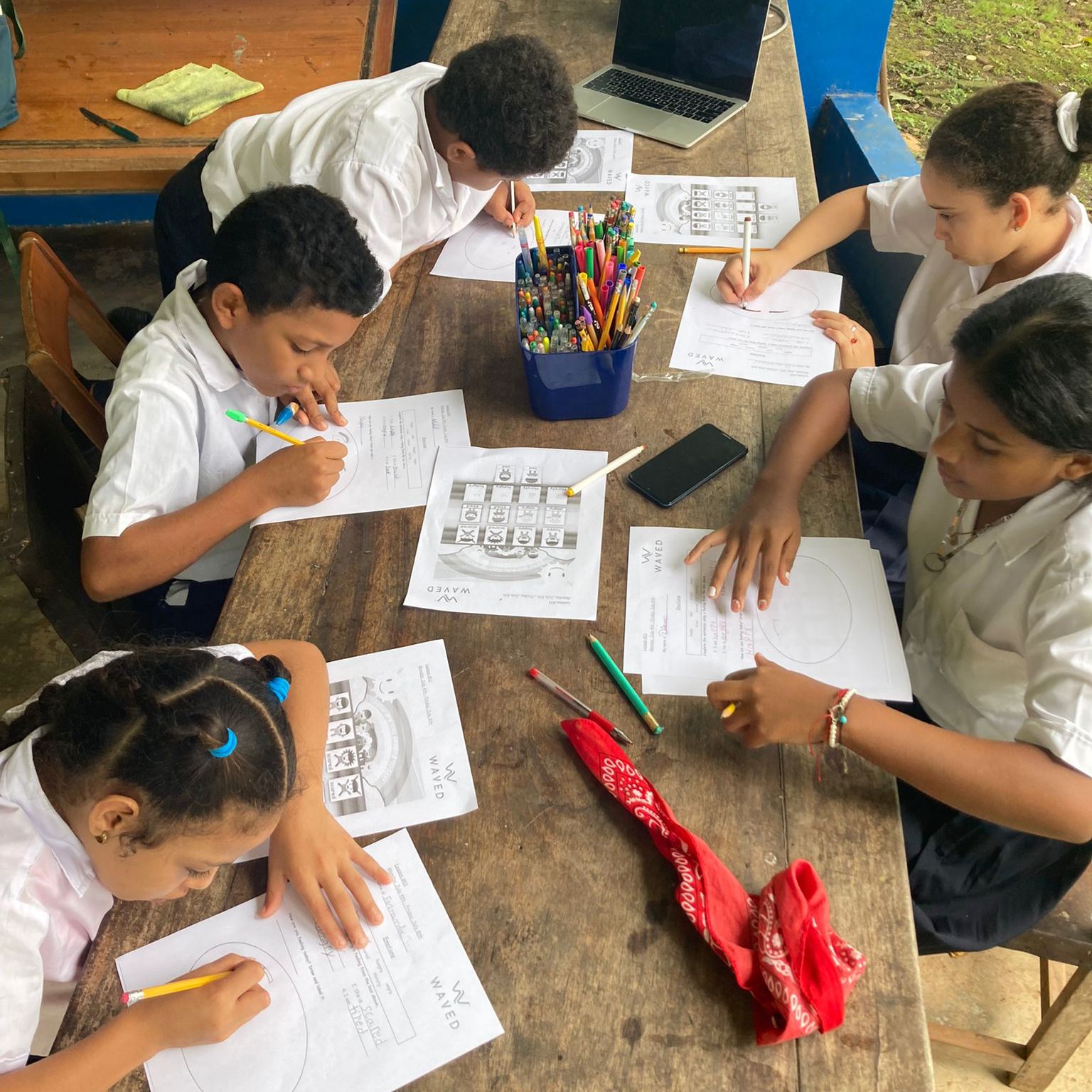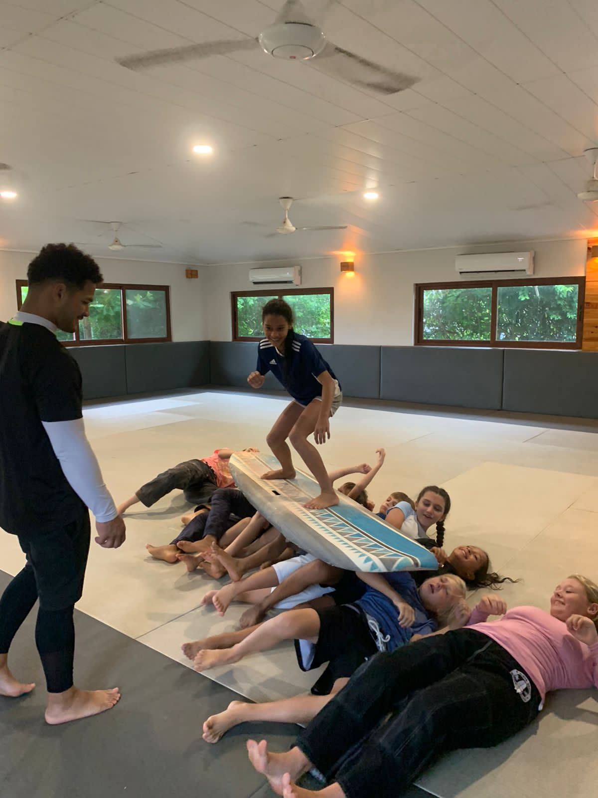 Mientras entrenan, practican diferentes disciplinas y se divierten, nuestros talentos continúan su desarrollo dentro del programa de surf. Durante este último mes, pasaron por nuevos entrenadores, incluyendo por el cinturón negro, John Boyle, quien estuve emocionado de enseñar a los cuatro estudiantes de Waved los primeros pasos en el deporte Brazilian Jiu Jitsu.