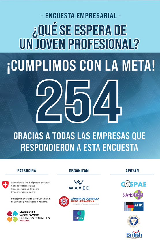 La iniciativa que desarrollamos junto a la Cámara de Comercio Suizo-Panameña, a mediadios del año pasado,‘Qué se espera de un joven profesional’ cuenta con una totalización de 254 encuestas llenadas, y actualmente nos encontramos en la fase de análisis de data para presentar los resultados al público.