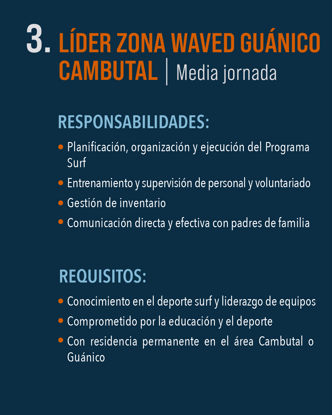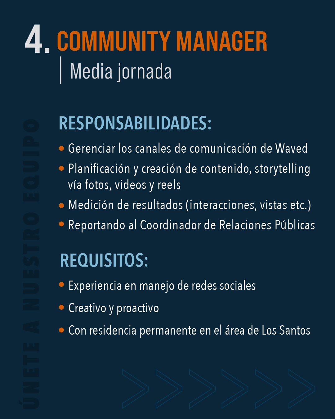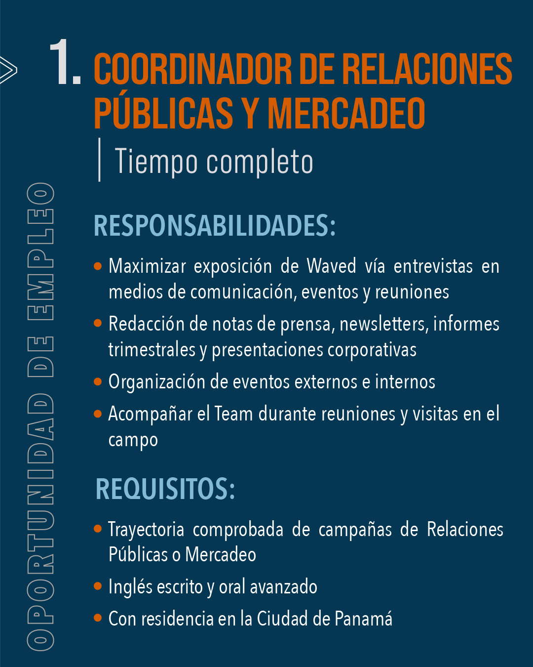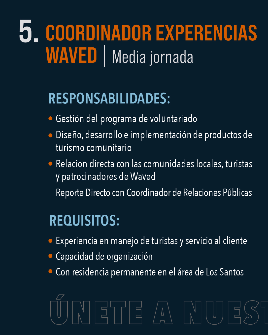 Si eres quien estamos buscando, envíanos tu CV y carta motivacional a nuestro correo: info@gowaved.org |