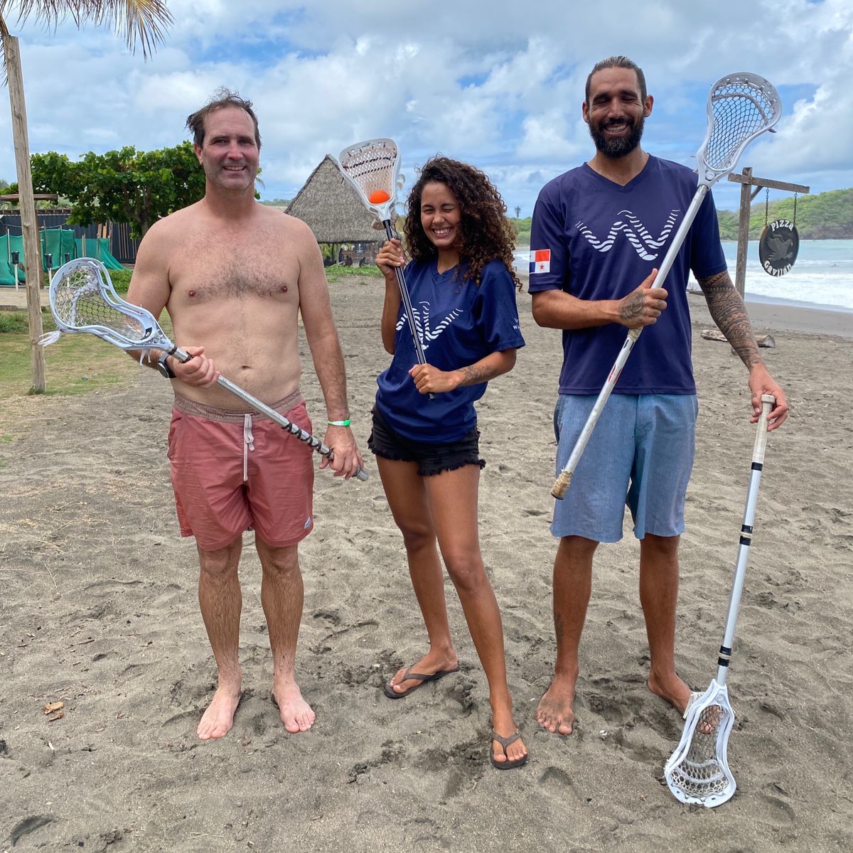 Agradecidos con los turistas por sus donaciones. Un tabla de surf y raquetas de Lacrosse. |