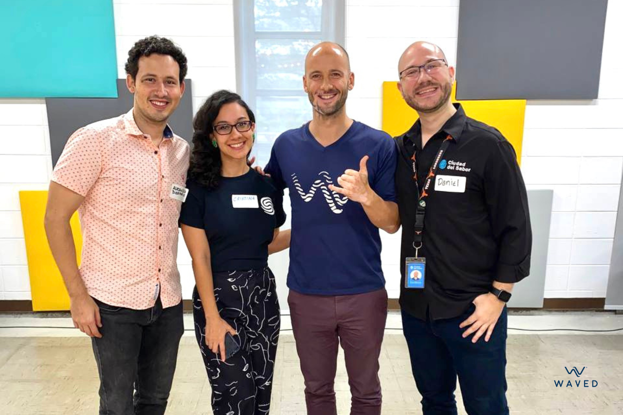 | | De izquierda a derecha, Alejandro Carbonell - Director del Centro de Innovación, Cristina Collazos - Gerente de Aceleración, Bastian Barnbeck - Fundador y Director Ejecutivo de Waved, y Daniel Billingslea - Lider del Programa de Incubación de Ciudad del Saber |