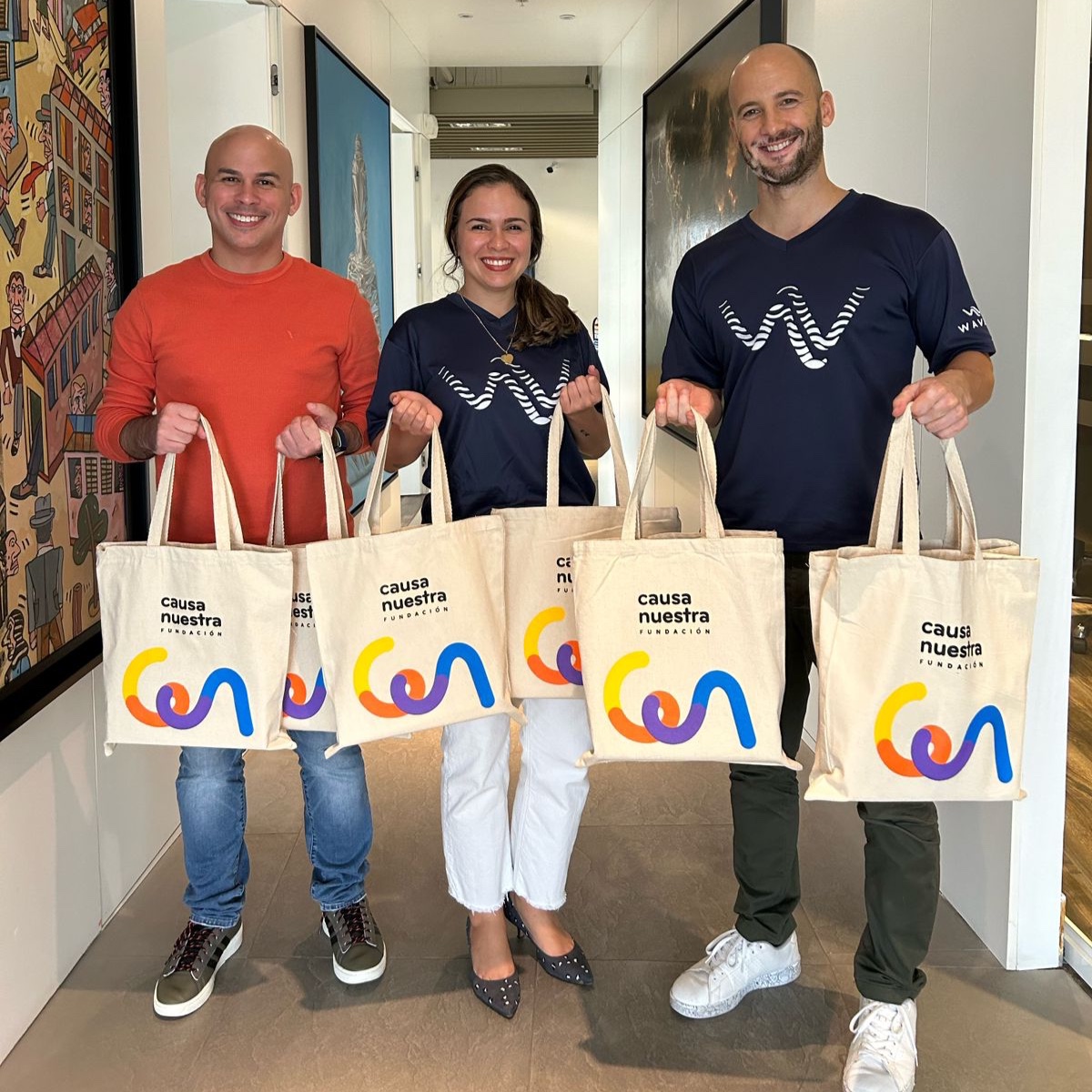 Estamos muy agradecidos con la Fundación Causa Nuestra, quienes son también uno de nuestros sponsors, por el bonito detalle de obsequiarles materiales escolares a nuestros estudiantes. ¡Gracias! En la foto de izquierda a derecha, René Irigoyen - Ejecutivo de la Fundación Causa Nuestra, Suellen Guimaraes y Bastian Barnbeck - Fundador y Director Ejecutivo de Waved. |