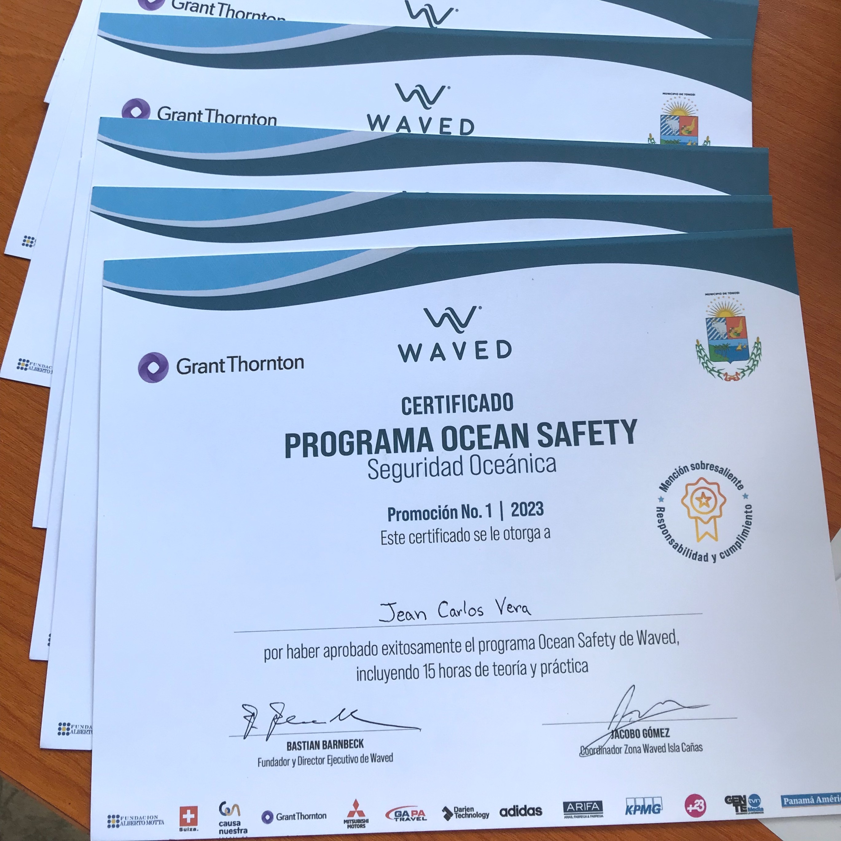| Felicitamos a la primera generación del Programa Ocean Safety, con 24 graduados de la Zona Waved Isla Cañas. Gracias especiales a nuestro patrocinador Grant Thornton. |