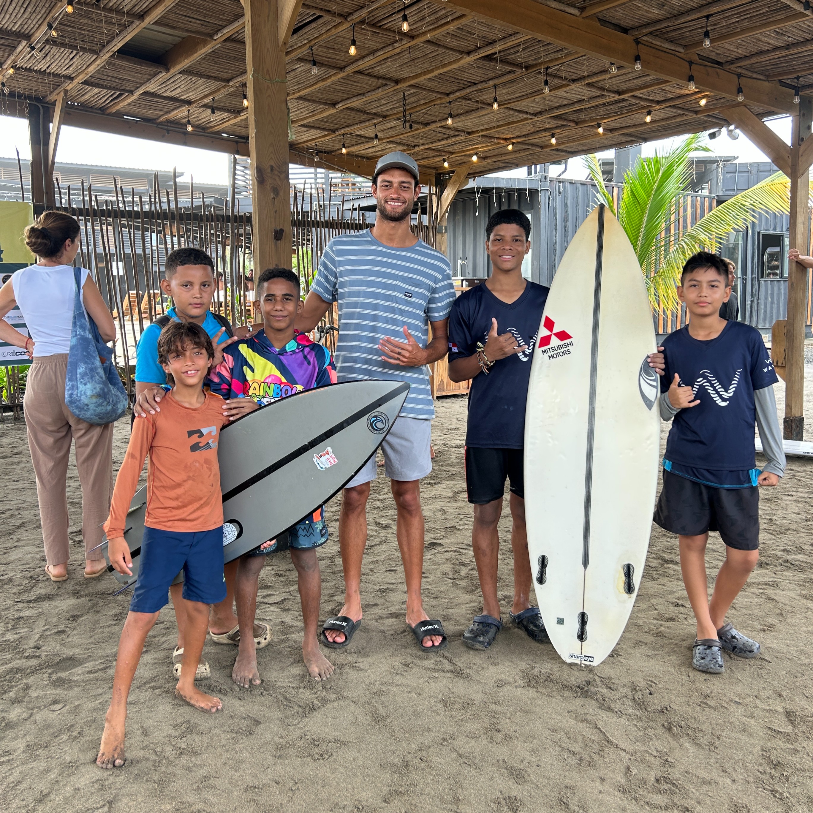 Agradecemos a Pucha García y su hijo Kalani por donar dos tablas de surf para nuestros estudiantes de Zona Waved. Kalani, recientemente firmado por Mitsubishi Panamá, es un ejemplo de que los sueños se alcanzan con esfuerzo y pasión. We thank Pucha García and her son Kalani for donating two surfboards to our Zona Waved students. Kalani, recently signed by Mitsubishi Panama, is a true example that dreams are achieved through effort and passion.