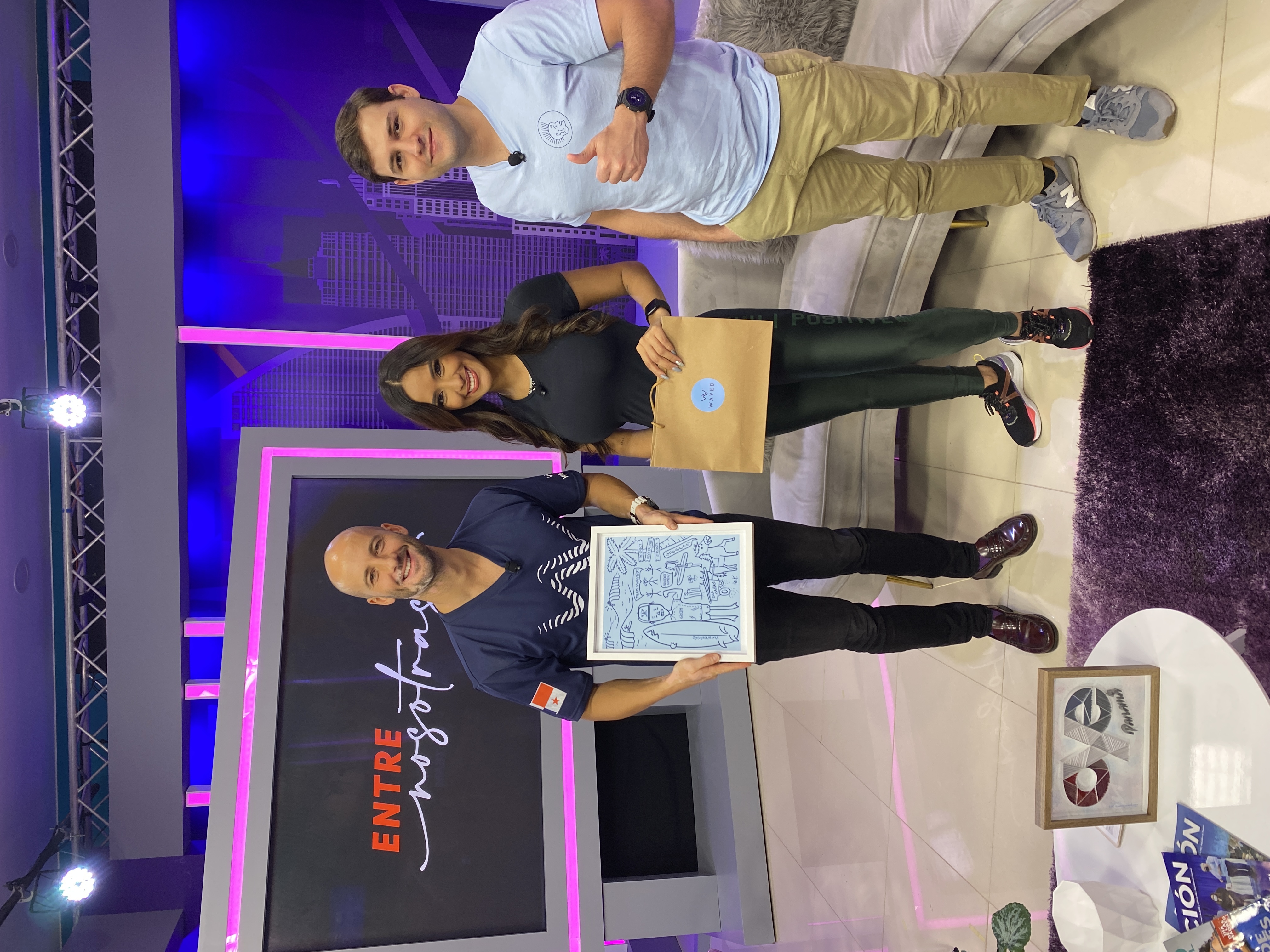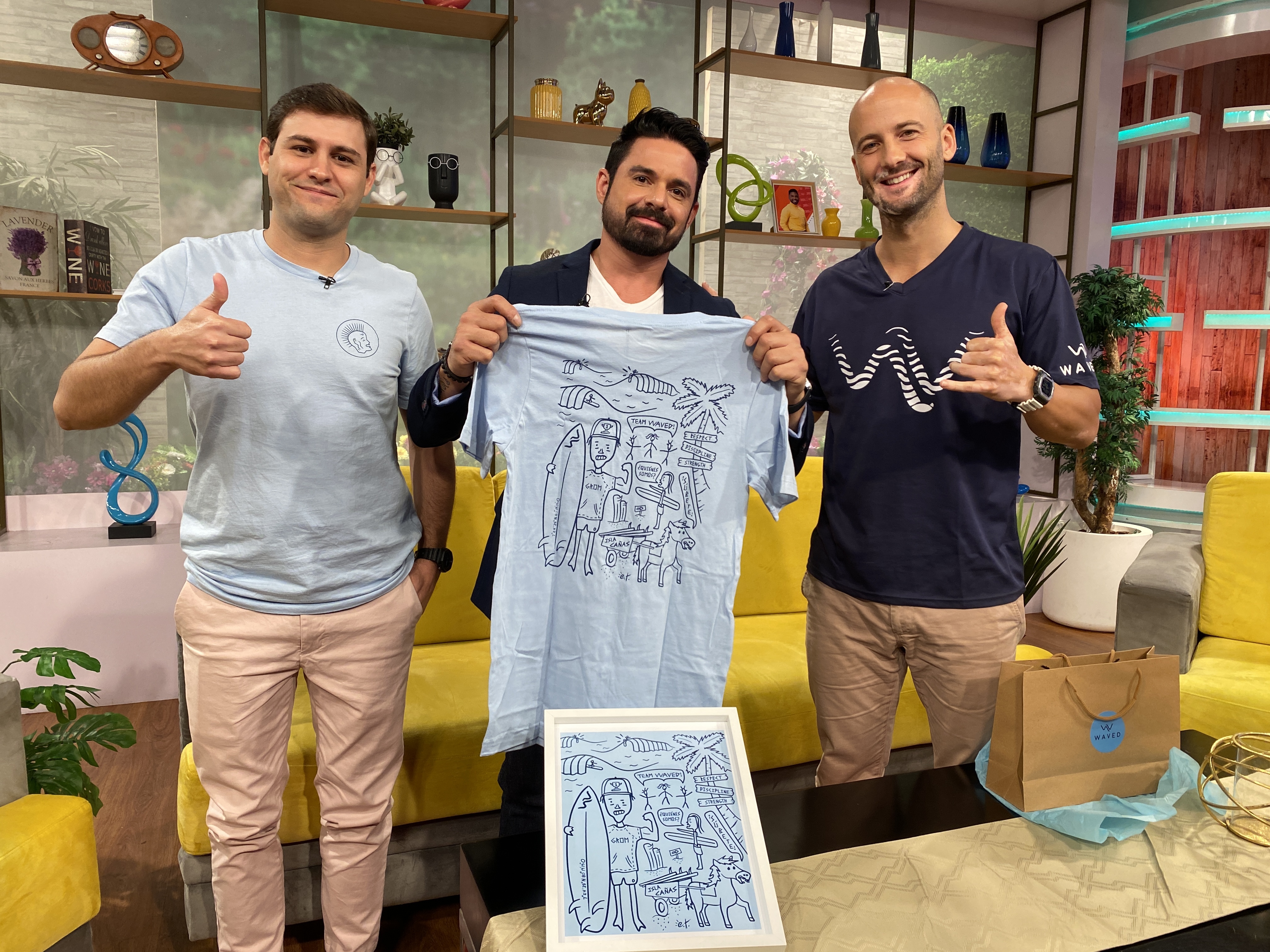 Jonny Talento Erratic y Bastian Barnbeck junto a Robin Durán en el TV show Jelou promocionando la camiseta.