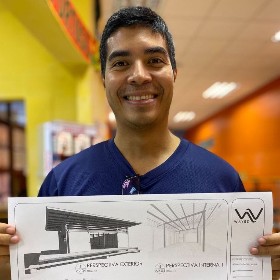 Ingeniero Gabriel Rodriguez con planos de estructura de ZONA
