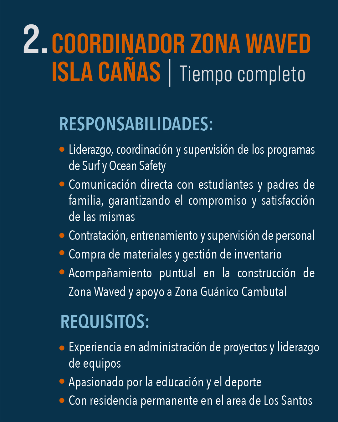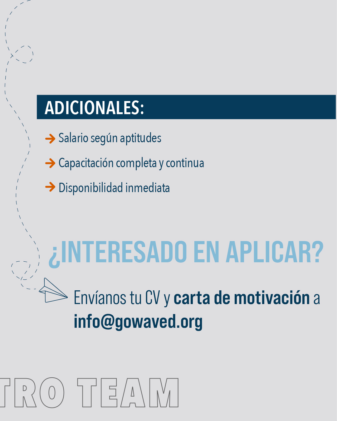 Si eres quien estamos buscando, envíanos tu CV y carta motivacional a nuestro correo: info@gowaved.org |
