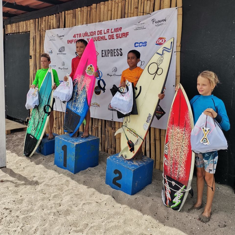 | Nuestros talentos participaron en la 4ta válida de la Liga Infantil y Juvenil de Surf en Playa Caracol y una vez más resaltaron y lograron clasificación en el podio. Categoría Novatos Teen: 3er Lugar Jesús Luna. Categoría Sub 12: 2do Lugar Jesús Luna. Categoría Novatos: 3er Lugar Diana Vera. Felicidades talentos y que continúen los éxitos. |