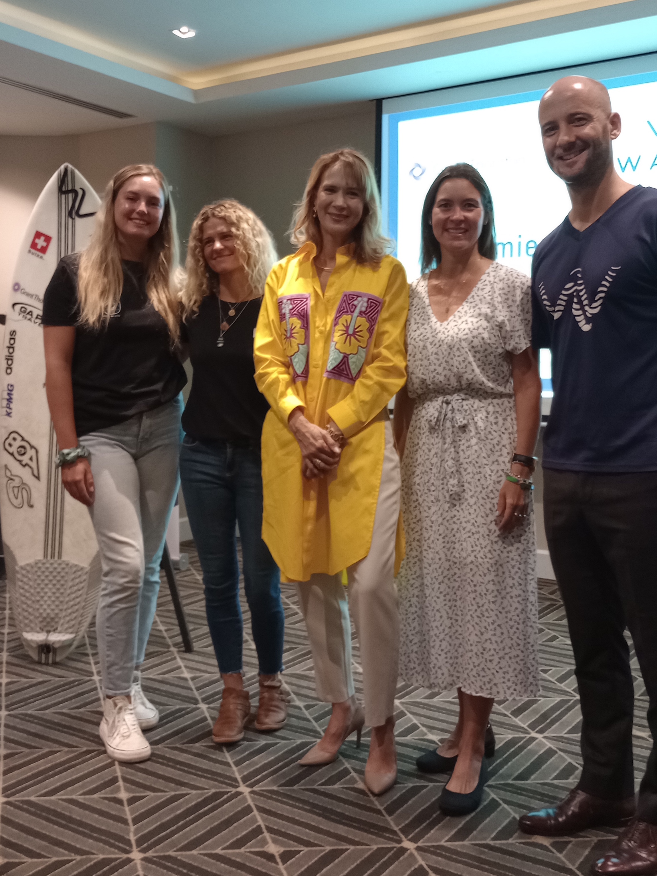 | | Calah Couzens, Marguerite Hofmeyr de Sentinel Ocean Alliance, S.E. Yill Otero - Viceministra de Asuntos Multilaterales y Cooperaci贸n, Geraldine Petterson - C贸nsul Honoraria de Suiza, Bastian Barnbeck - Fundador y Director Ejecutivo de Waved. |